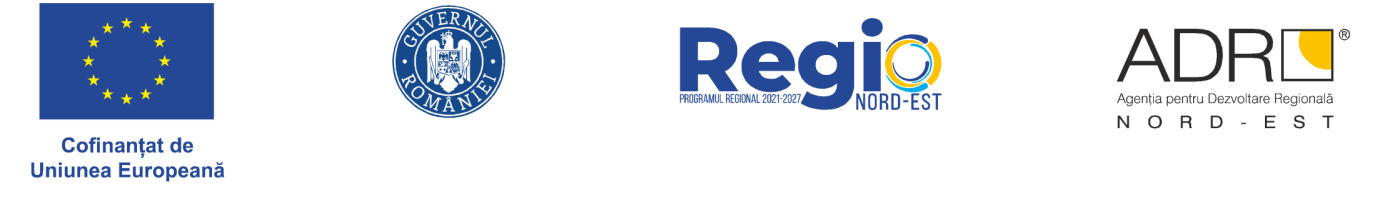 cod MySMIS 314297, finanțat prin Programul Regional Nord-Est 2021-2027, Prioritatea 1 „ NORD-EST – O REGIUNE MAI COMPETITIVĂ, MAI INOVATIVĂ”,